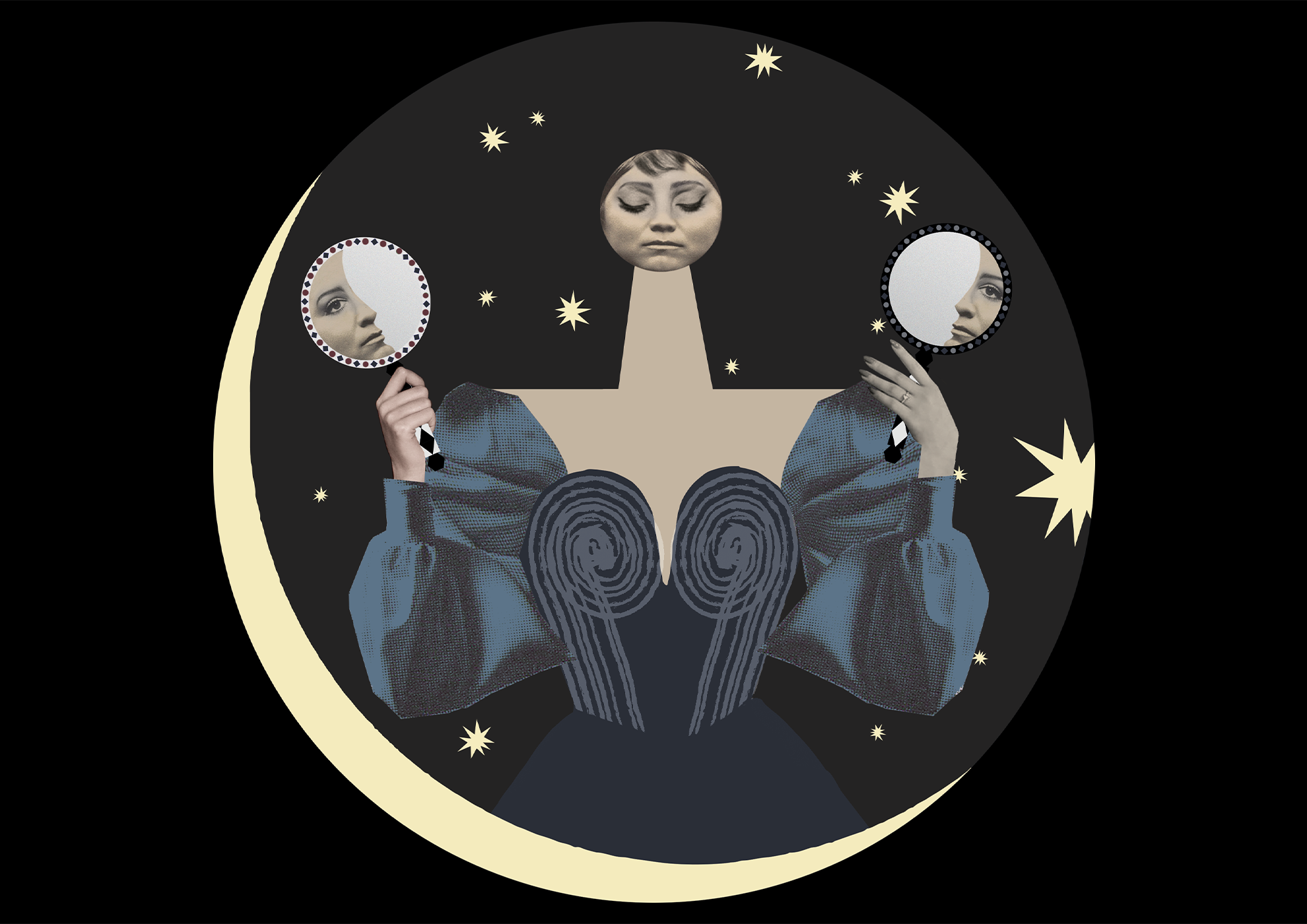 illustratore Nei miei collage mi piace creare mondi surreali abitati da creature ibride, come uomini con teste di pesce o donne con corpi di banana.